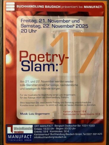 Poetry Slam Nr 17 bei Manufact am 21. und 22. 11.2025